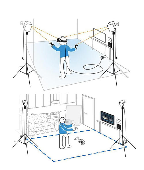 游戏时请确保头显与基站之间的距离超过1.5米,否则会丢失追踪信号。同时请确保基站高度约为2米。
