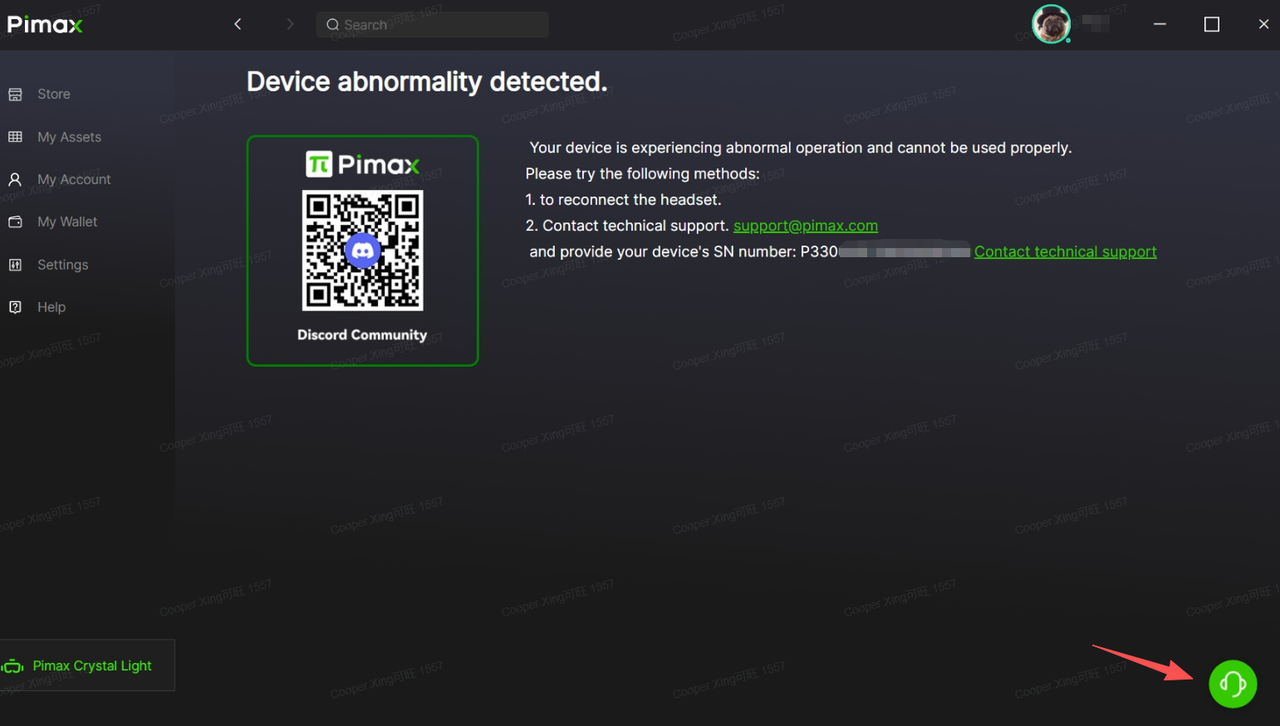 • 推荐方式:通过 Pimax Play 客户端内的“在线聊天”功能即时联系我们,或提交技术支持工单。